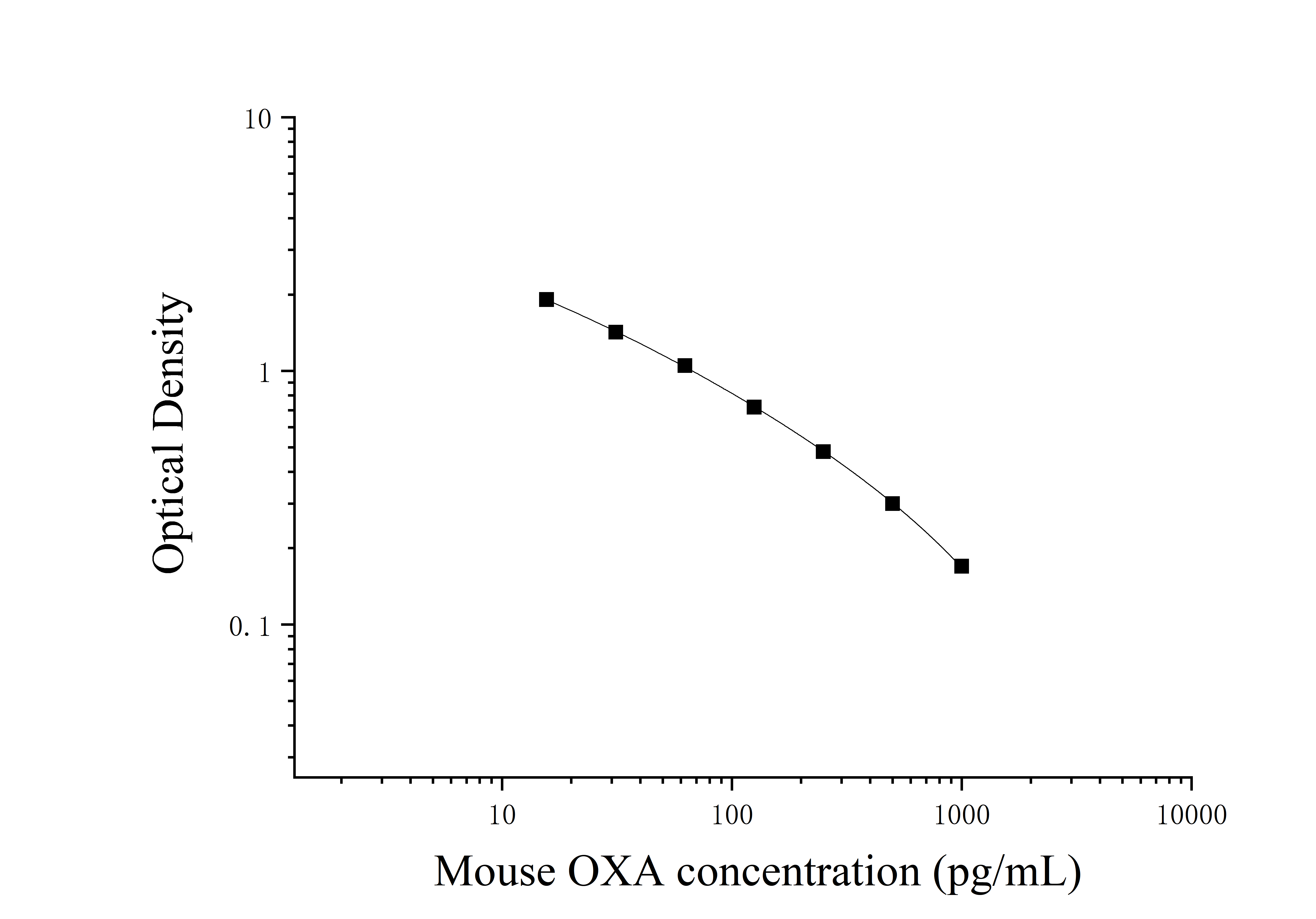 由于实验操作条件的不同( 如操作者、移液技术、洗板技术和稳定条件等),标准曲线的OD值会有所差异。以下数据和曲线仅供参考,实验者需根据自己的实验建立标准曲线。