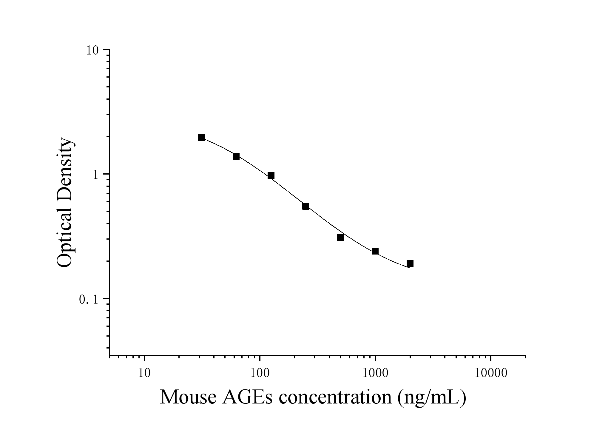 由于实验操作条件的不同( 如操作者、移液技术、洗板技术和稳定条件等),标准曲线的OD值会有所差异。以下数据和曲线仅供参考,实验者需根据自己的实验建立标准曲线。