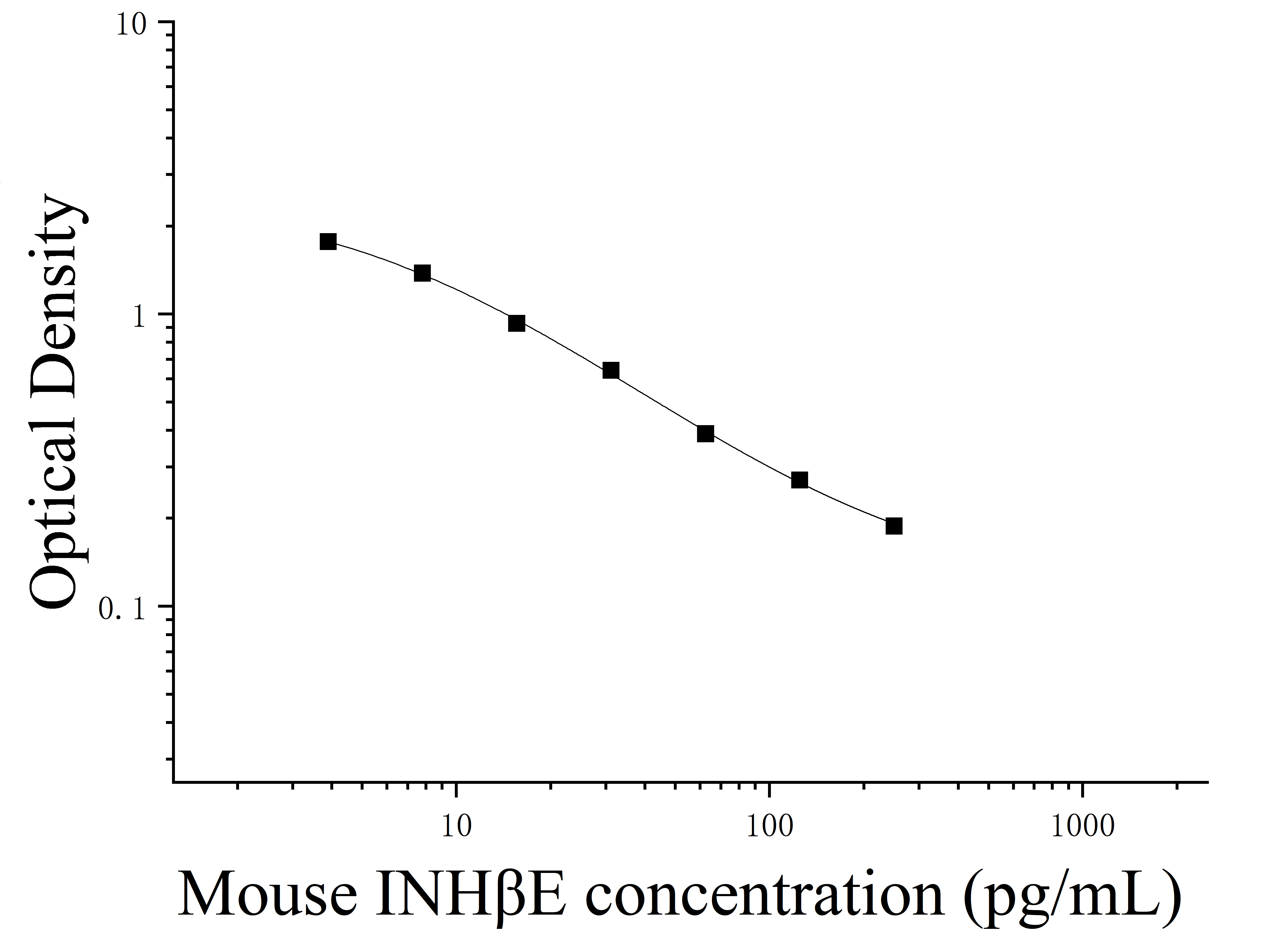 由于实验操作条件的不同( 如操作者、移液技术、洗板技术和稳定条件等),标准曲线的OD值会有所差异。以下数据和曲线仅供参考,实验者需根据自己的实验建立标准曲线。