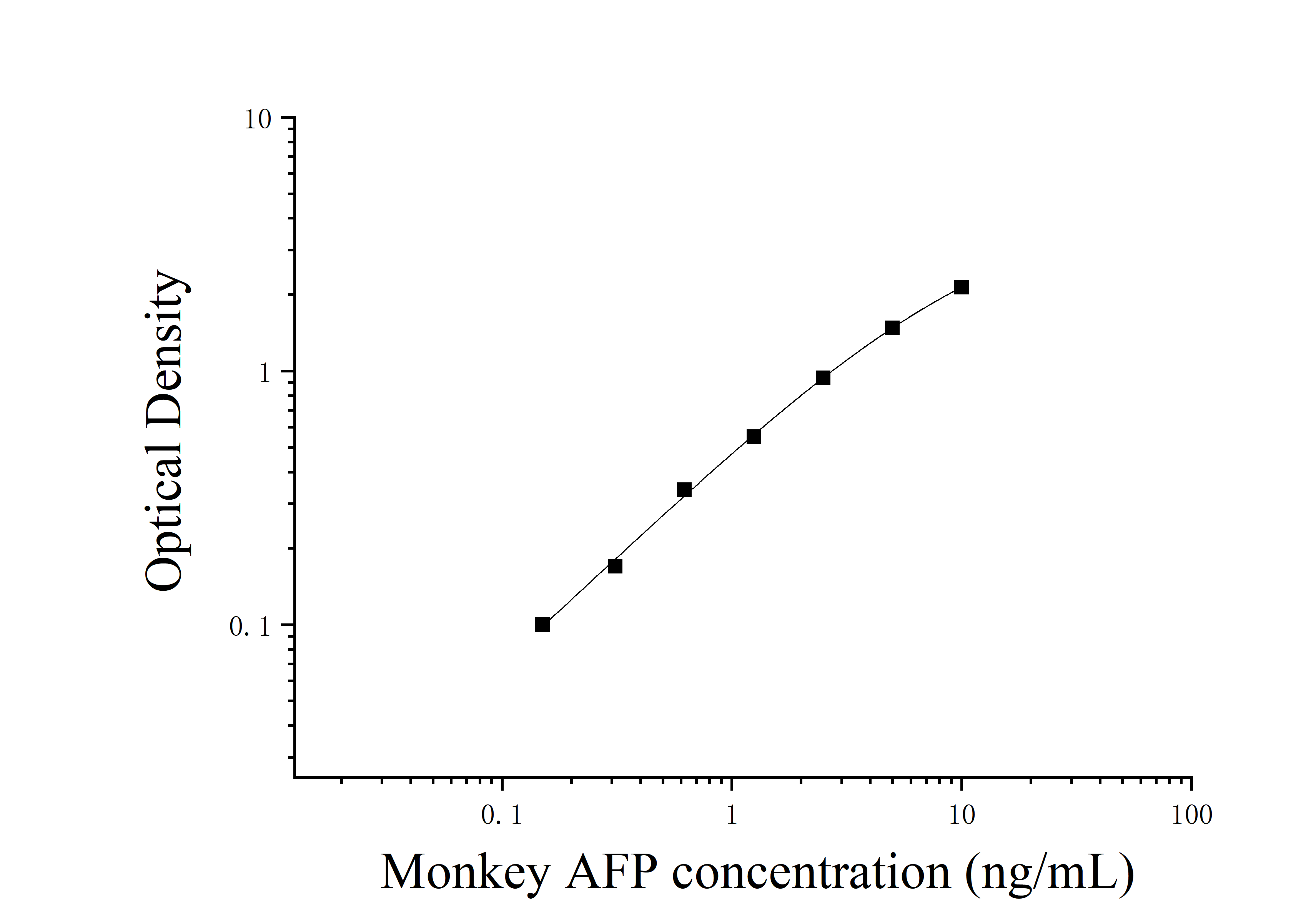 由于实验操作条件的不同( 如操作者、移液技术、洗板技术和稳定条件等),标准曲线的OD值会有所差异。以下数据和曲线仅供参考,实验者需根据自己的实验建立标准曲线。
