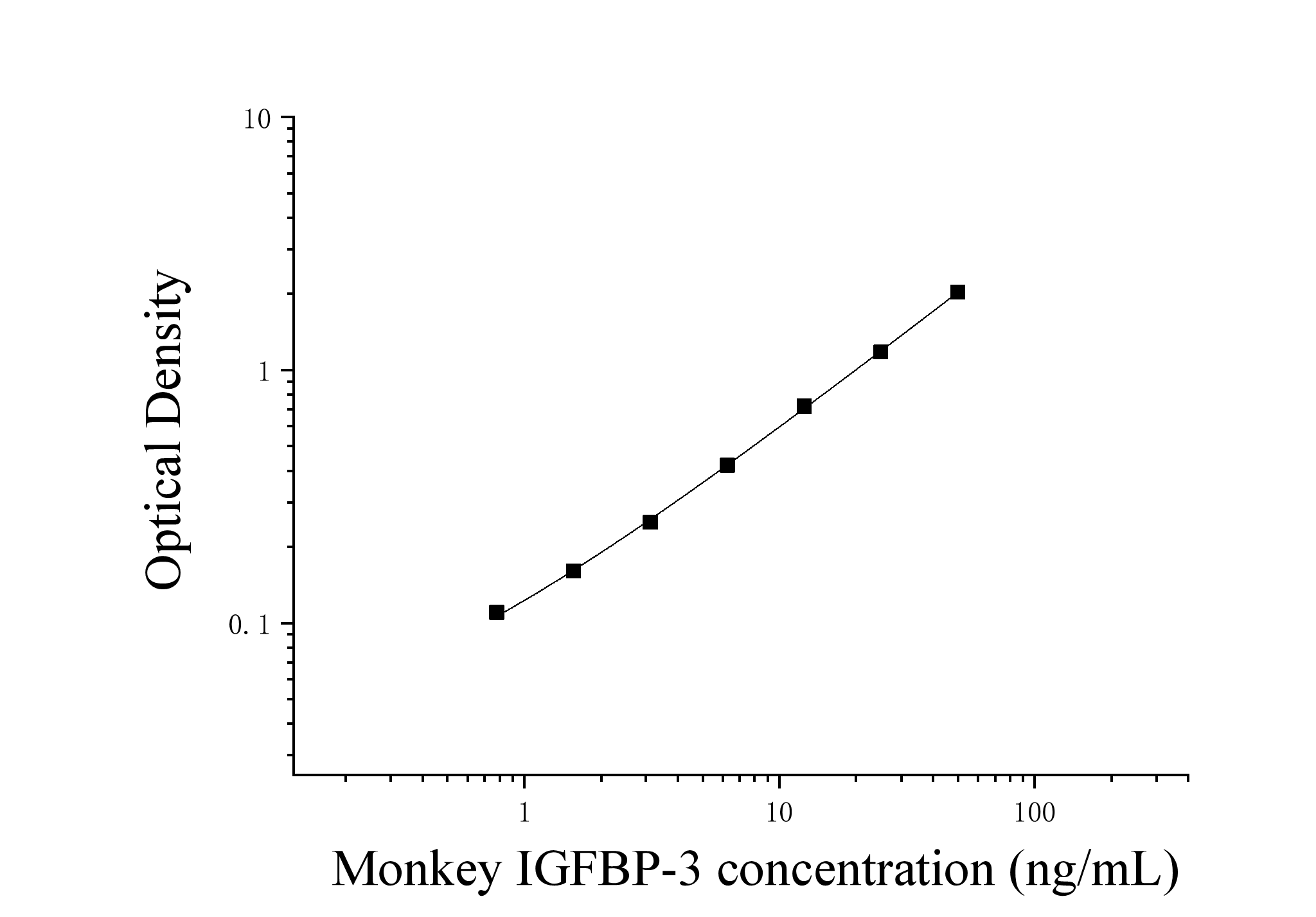 由于实验操作条件的不同( 如操作者、移液技术、洗板技术和稳定条件等),标准曲线的OD值会有所差异。以下数据和曲线仅供参考,实验者需根据自己的实验建立标准曲线。