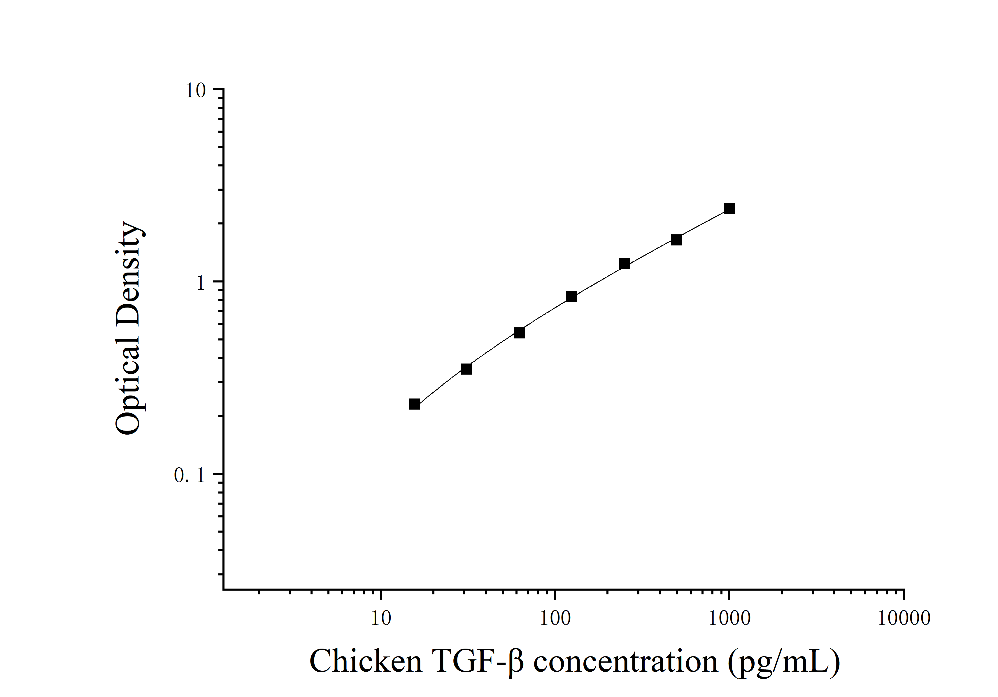 由于实验操作条件的不同( 如操作者、移液技术、洗板技术和稳定条件等),标准曲线的OD值会有所差异。以下数据和曲线仅供参考,实验者需根据自己的实验建立标准曲线。