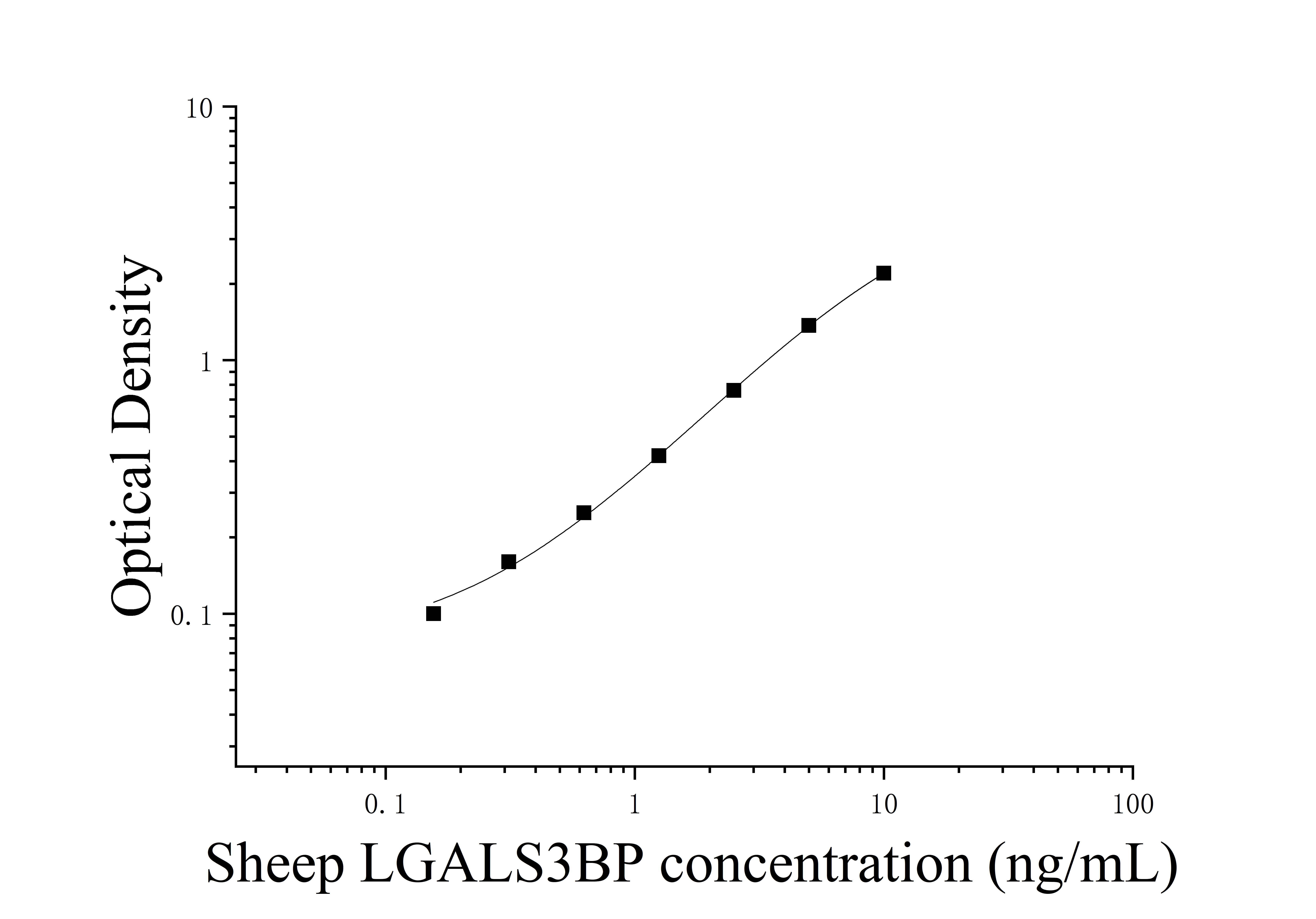由于实验操作条件的不同( 如操作者、移液技术、洗板技术和稳定条件等),标准曲线的OD值会有所差异。以下数据和曲线仅供参考,实验者需根据自己的实验建立标准曲线。