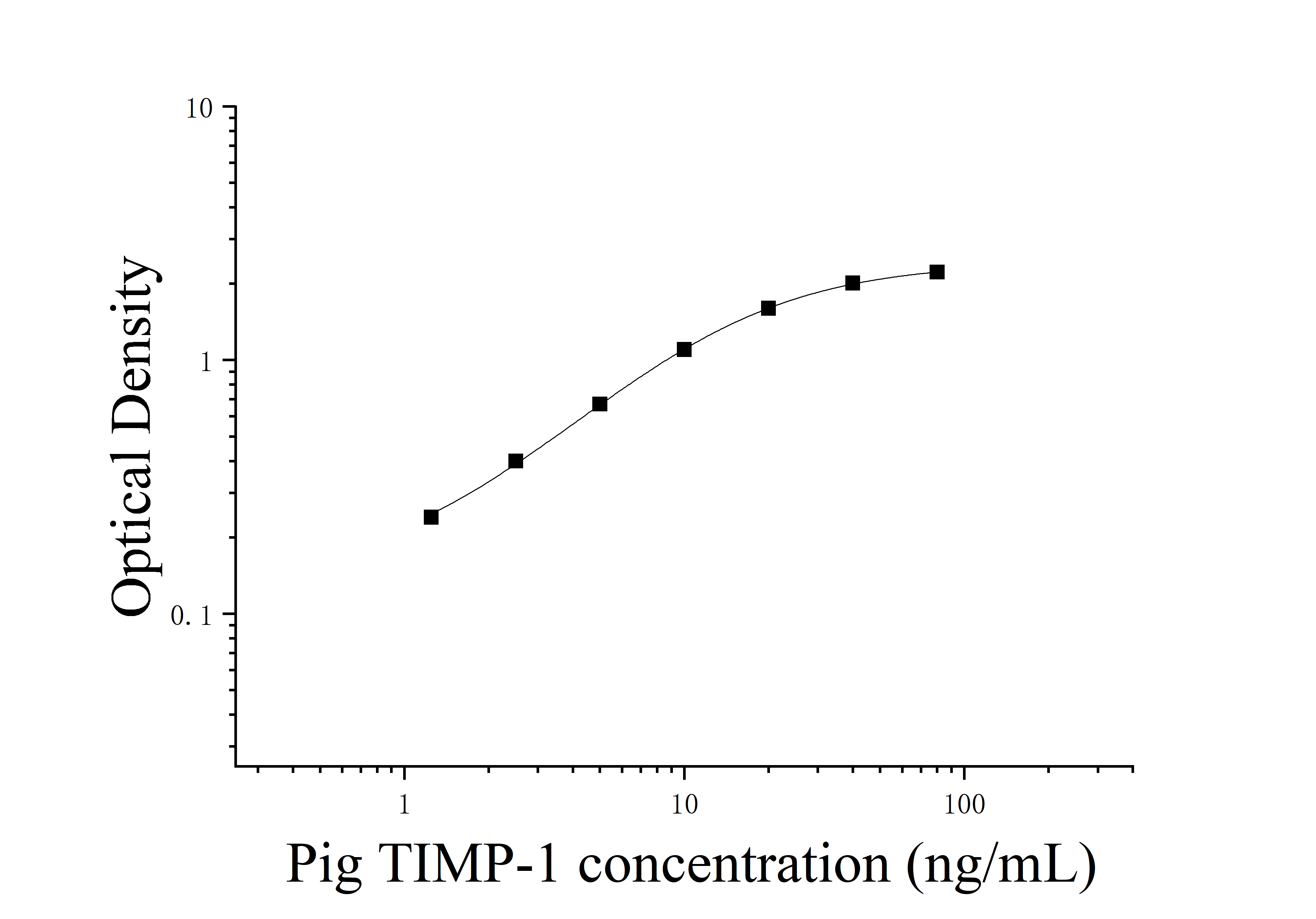 由于实验操作条件的不同( 如操作者、移液技术、洗板技术和稳定条件等),标准曲线的OD值会有所差异。以下数据和曲线仅供参考,实验者需根据自己的实验建立标准曲线。