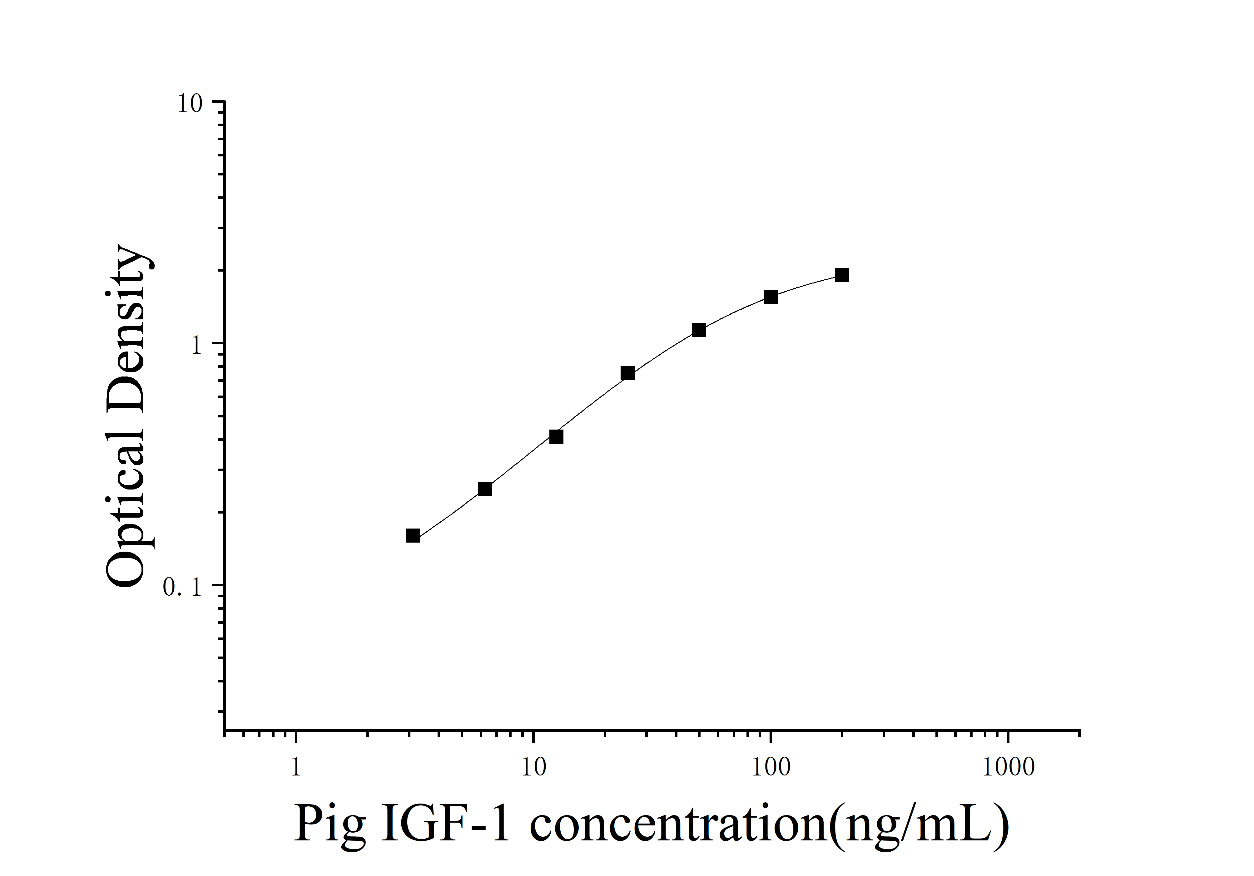 由于实验操作条件的不同( 如操作者、移液技术、洗板技术和稳定条件等),标准曲线的OD值会有所差异。以下数据和曲线仅供参考,实验者需根据自己的实验建立标准曲线。