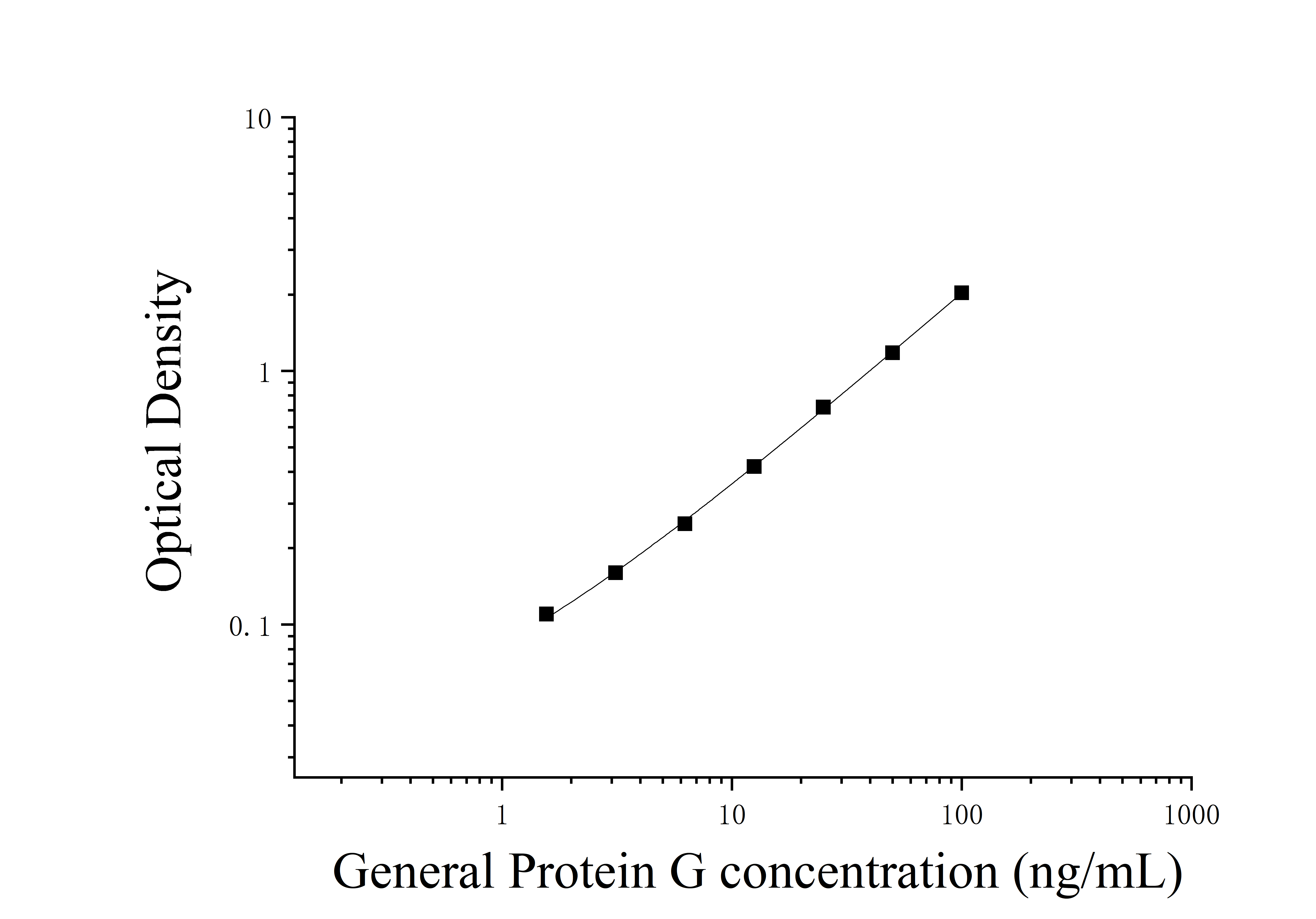由于实验操作条件的不同( 如操作者、移液技术、洗板技术和稳定条件等),标准曲线的OD值会有所差异。以下数据和曲线仅供参考,实验者需根据自己的实验建立标准曲线。