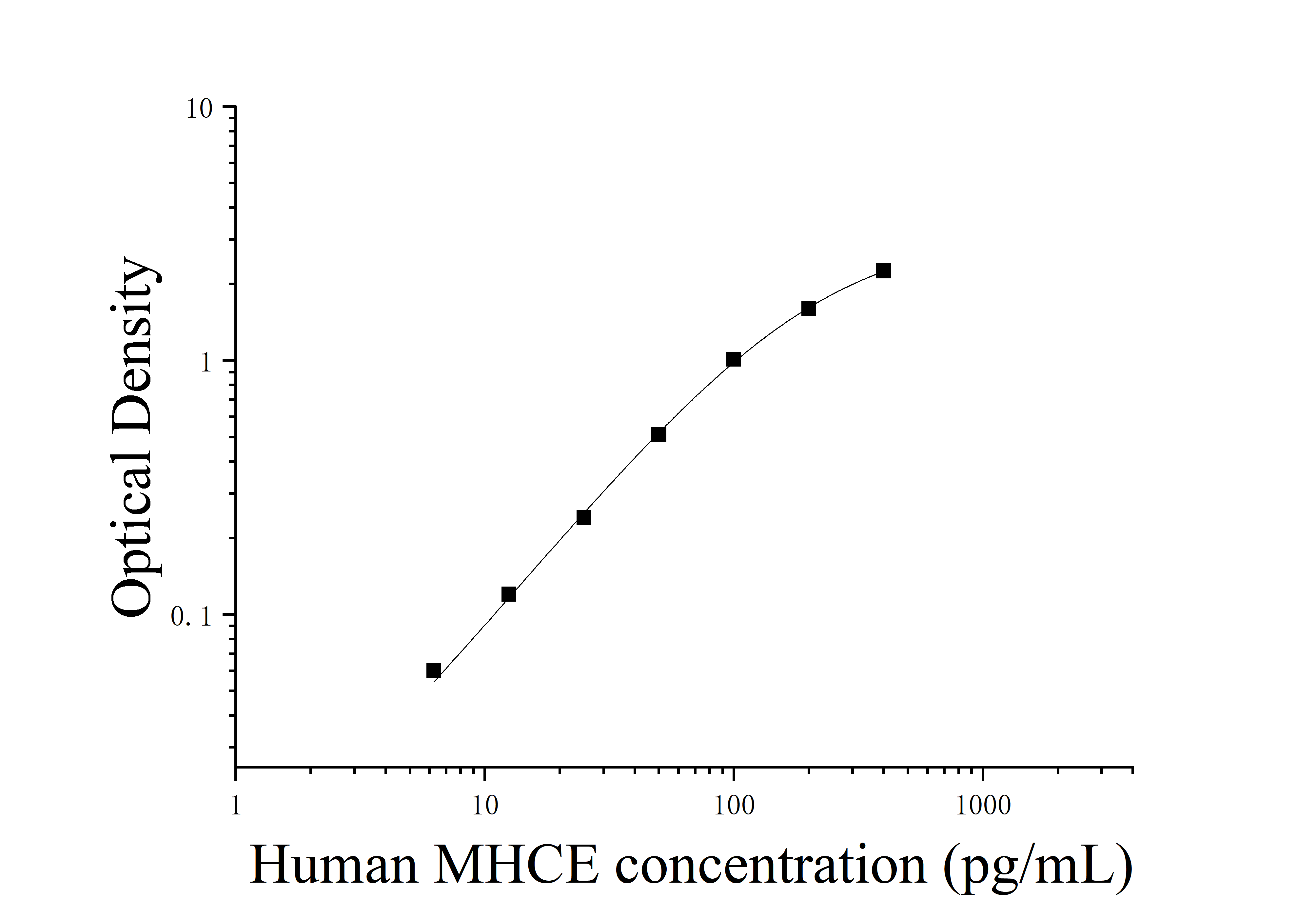 由于实验操作条件的不同( 如操作者、移液技术、洗板技术和稳定条件等),标准曲线的OD值会有所差异。以下数据和曲线仅供参考,实验者需根据自己的实验建立标准曲线。