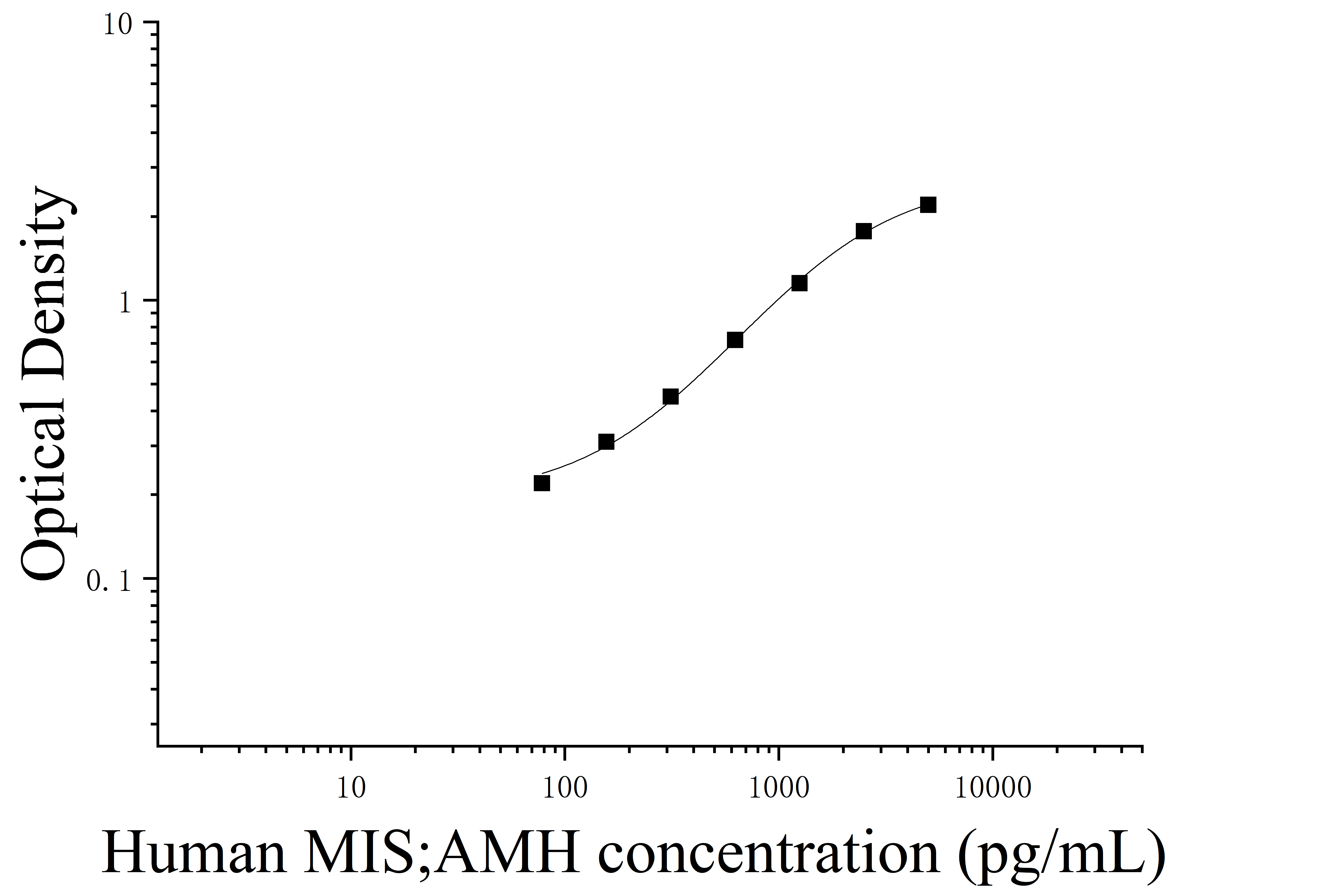 由于实验操作条件的不同( 如操作者、移液技术、洗板技术和稳定条件等),标准曲线的OD值会有所差异。以下数据和曲线仅供参考,实验者需根据自己的实验建立标准曲线。