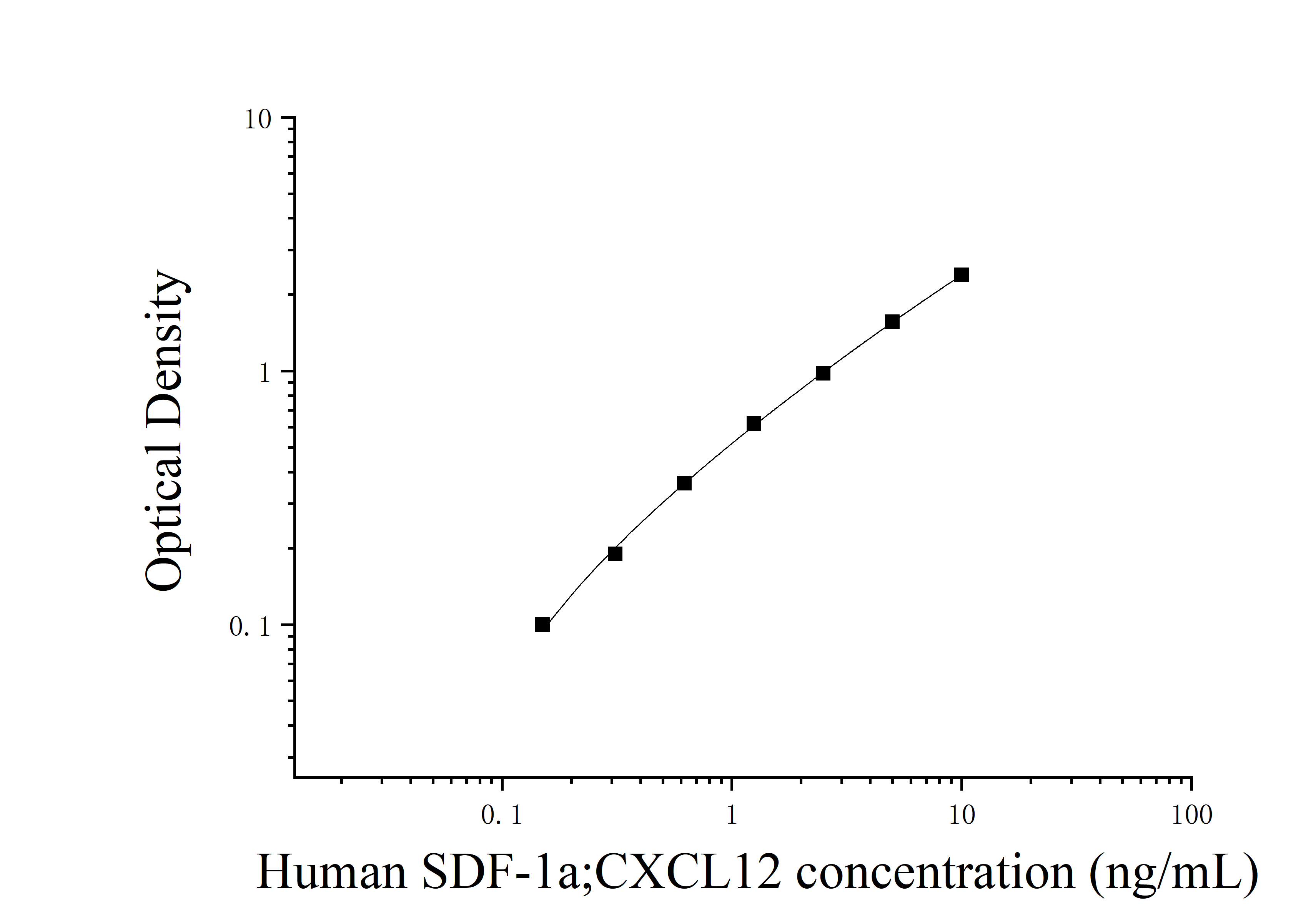 由于实验操作条件的不同( 如操作者、移液技术、洗板技术和稳定条件等),标准曲线的OD值会有所差异。以下数据和曲线仅供参考,实验者需根据自己的实验建立标准曲线。