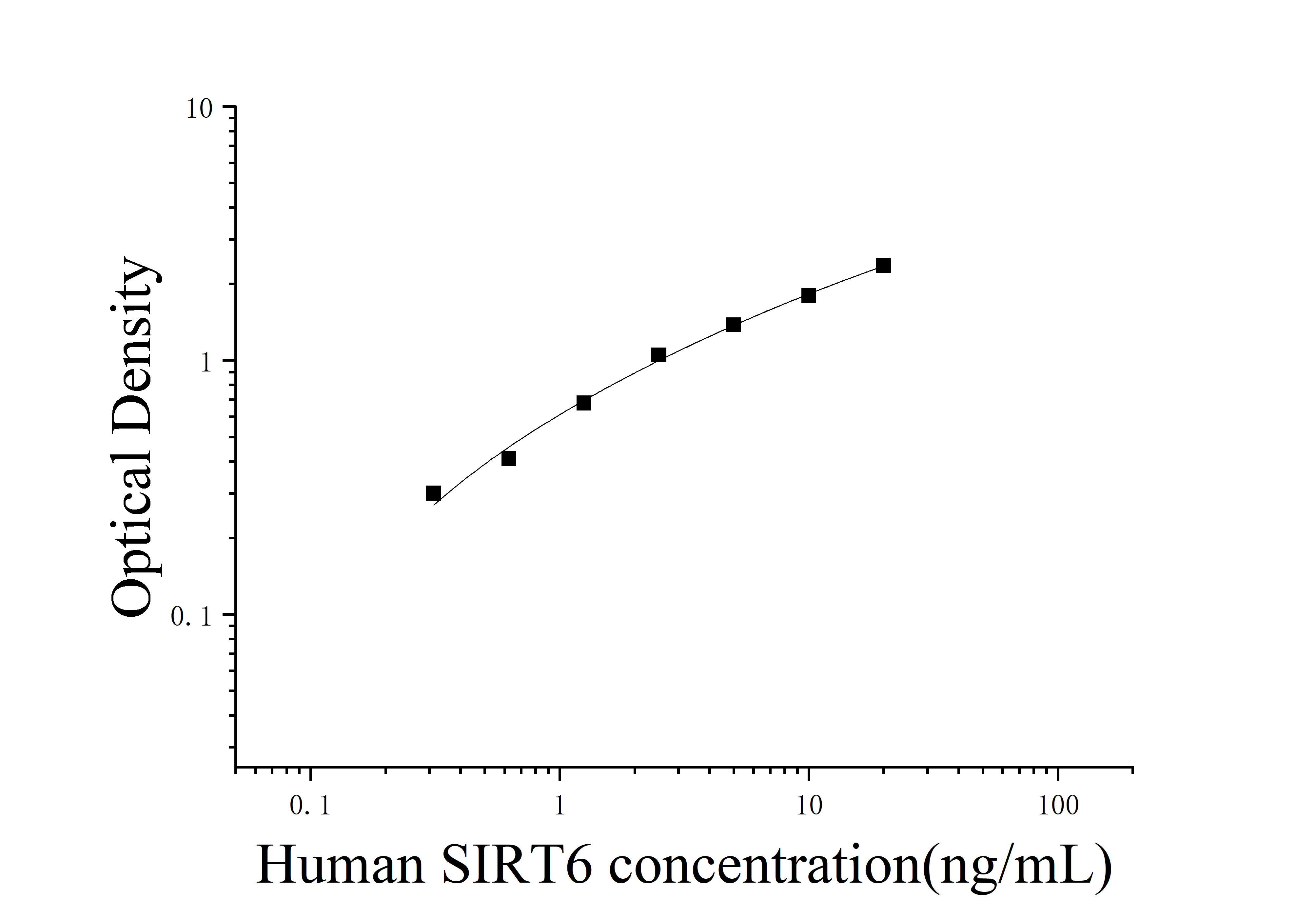 由于实验操作条件的不同( 如操作者、移液技术、洗板技术和稳定条件等),标准曲线的OD值会有所差异。以下数据和曲线仅供参考,实验者需根据自己的实验建立标准曲线。