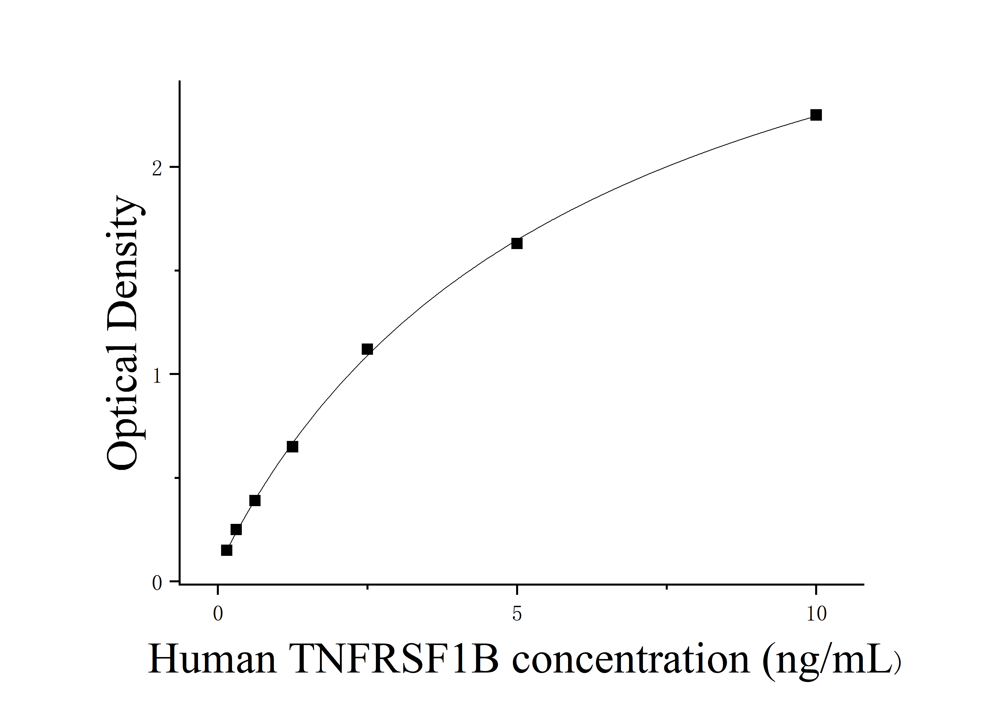 由于实验操作条件的不同( 如操作者、移液技术、洗板技术和稳定条件等),标准曲线的OD值会有所差异。以下数据和曲线仅供参考,实验者需根据自己的实验建立标准曲线。