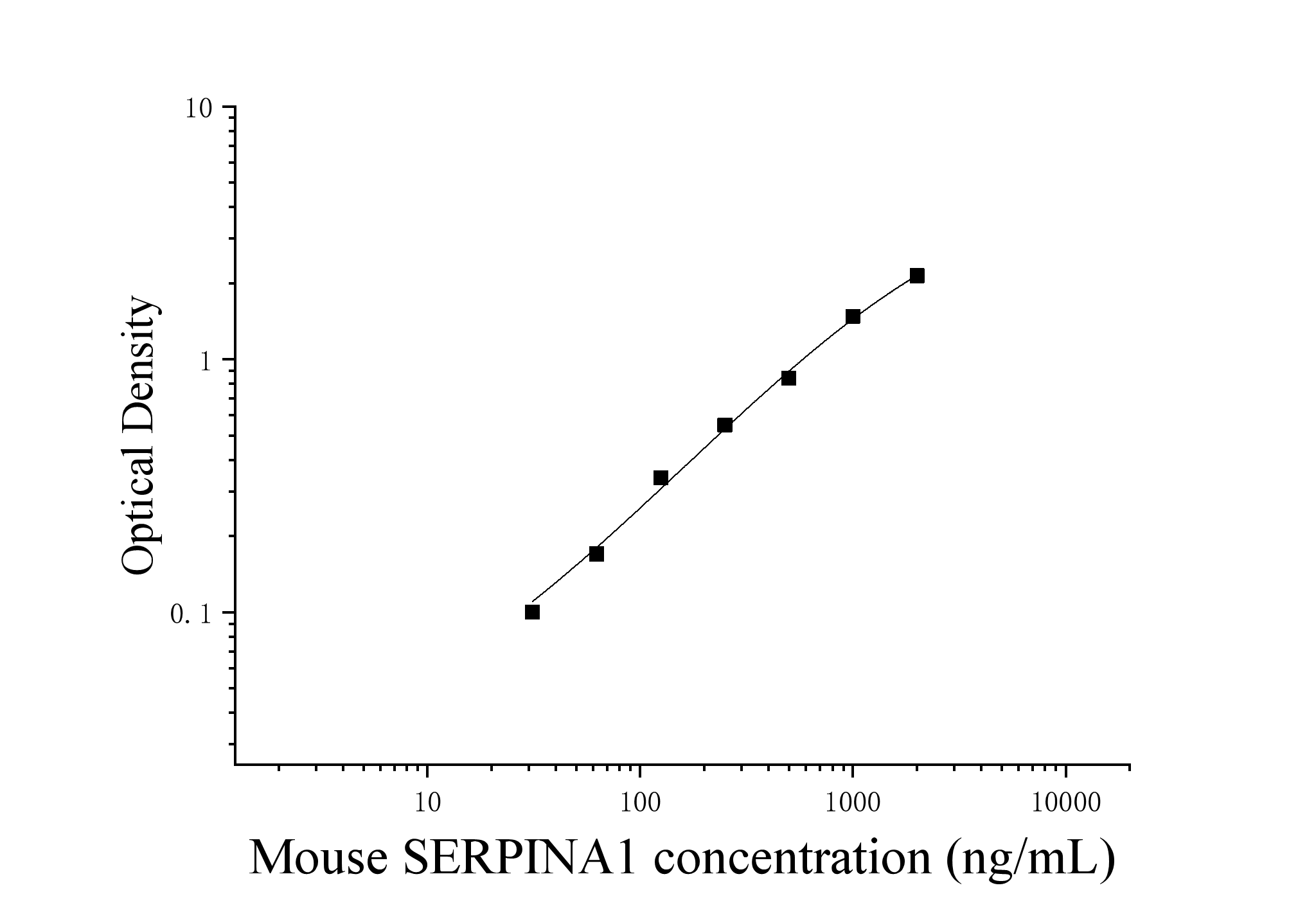 由于实验操作条件的不同( 如操作者、移液技术、洗板技术和稳定条件等),标准曲线的OD值会有所差异。以下数据和曲线仅供参考,实验者需根据自己的实验建立标准曲线。