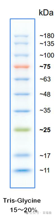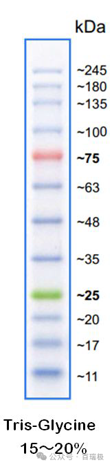 那使用时我们该如何选择那??? 蛋白Marker? 蛋白Marker:即蛋白分子量标准,是一些已知分子量的蛋白质的混合物,像“尺子”一样用来指示蛋白质条带的大小。 在Western Blot过程中,分子量Marker就像个螺丝钉一样虽然是其中小小的一环,然而就是这样一个小细节对实验结果有着不可忽视的作用。Marker的作用主要是用来指示蛋白条带所对应的分子量大小,只有标准量精确无误了,实验结果才有说服力,除此之外,蛋白Marker还有显示转膜是否成功、以及蛋白在凝胶上的电泳程度等作用,因此选择正确的蛋白Marker也是Western Blot实验成功的必要条件之一。百瑞极提供7款不同类形的蛋白marker BN20606 彩虹广谱蛋白Marker(10-310KD) 250ul(50T) 590 10×250ul(500T) 5200 BN24293 次高分子量蛋白质Marker(43-200kDa),非预染 10T 260 BN27001 彩虹180广谱蛋白Marker(11-180KD) 250μl,50T 380 BN27002 彩虹245广谱蛋白Marker(11-245KD) 250μl,50T 400 BN27015 低分子量蛋白Marker(14.4-97.4KDa) 20T 110 BN27016 超低蛋白Marker(3.3,5.8,7.8,14.4,20.1KD) 15T 335 BN27017 低分子量蛋白Marker(14.4-97.4KDa,预染) 20T 160 蛋白Marker的分类 总体来说,目前最常用的蛋白Marker分为非预染蛋白Marker和预染蛋白Marker。 非预染蛋白Marker 是几种已知分子量并纯化好的蛋白质预混液,方便不同大小的蛋白比较。非预染的Marker使用上不如预染Marker好用,因为电泳过程中完全看不到,电泳结束后经过蛋白染色后才能起指示作用,无法在实验过程中起预示参照作用,属于“后知后觉”型的。但是由于蛋白没有附带染料分子或者是标记分子,所示大小正好是蛋白原本的大小,所以比较准确,可以精确判断蛋白大小。 预混的Marker通常有几条带加倍浓度作为指示,因为混合的条带越多,越不好记,谁知道哪条是哪条!数到眼都花了。所以当看到特别浓的那几条标志带就记得是哪里了。不过要记得,小带通常都不那么容易看清楚的。在选择上来说,当然是选择其中至少有一条条带和自己的目的蛋白大小相近的最好,越近越好。 预染蛋白Marker 预染蛋白Marker是纯化好的一些蛋白,通过与染料共价耦联后混合在一起,在电泳过程中或者转膜时可以直接观察到。 预染蛋白Marker的出现方便了我们的实验,这种蛋白分子量标准可以帮助我们在电泳时、电泳后,以及转膜后监测电泳情况和估计迁移率——比如,已知垂直电泳最佳分辨区域大约在胶的2/3处,如果使用预染Marker就可以预测目标蛋白进入最佳分辨区时停止电泳以得到最佳分辨效果;如果观察到Marker电泳异常也可以及时终止电泳;另外在Western Blot转膜以后可以直接观察蛋白转膜是否完全,还可以在膜上标记蛋白分子量,所以吸引了许多实验室人员购买预染蛋白标准。 值得注意的是,预染蛋白Marker与染料共价耦联,所以在不同的缓冲条件下电泳时迁移特性可能会发生某些变化,可能导致一些偏差,所以不太适合精确定位蛋白——不过多数情况下Marker的条带未必能和我们的目标蛋白完全一样,我们得到的也不过是一种相对Marker指示的参考大小,最后都需要Western来定性,所以如果不是要区分大小相近的条带,预染Marker还是很好用的,而且也可以和未染色的蛋白标准一起使用。 预染蛋白Marker的分类 预染蛋白Marker又分:单色预染和多色预染,单色预染蛋白Marker通常会利用其中某些条带加倍浓度加深某些条带的粗细,来提示其大小的,方便我们快速记忆和区分各个条带的大小。而彩色蛋白Marker则用不同的颜色来区别,就更加好辨认啦。而且如果沉闷的电泳实验中跑出多彩的彩虹Marker,此时心情想必会愉快一些! 三色预染蛋白Marker, (11-180kDa) 彩虹 (11-245 kDa) 除了上面介绍的,市面上还有一些其他类型的蛋白Marker:如荧光蛋白Marker、生物素化Marker、显影蛋白Marker等…。 此外,蛋白Marker按分子量范围又分为高分子量、低分子量、宽分子量几类。检测大分子量蛋白经常使用到高分子量范围Marker,检测小蛋白甚至是一些多肽常会用到小分子量范围Marker。如果从整个实验室考虑,选宽分子量、条带分布比较均匀的Marker,这样你的蛋白无论在哪个区间都容易判断。 蛋白marker的种类真多啊!自己选起来好麻烦。 有没有很经典实用、使用广泛、且性价比好的推荐? 有的,安排! 值得入手的蛋白Marker 1 Rainbow Protein Marker(10-310kD)(BN20606) 现货· 2 彩虹180广谱蛋白marker(BN27001) 彩虹245广谱蛋白marker( BN27002) 产品特色: 三色预染,颜色鲜亮,条带整齐,便于观察。 稳定性能突出,经检测4℃放置两年无明显降解。 用量少,节约成本,仅5ul即可完美呈现(1.5mm,10孔梳)。 广谱多带,一支即可满足多种实验需求。 3 产品特色: 本产品包含5种蛋白质混合物,分子量范围为43kD-200kD,每种蛋白的含量约为20μg。经SDS-PAGE电泳, 用考马斯亮蓝染色后可以得到分布均匀密度相近的5条带。可以用来判断SDS-PAGE电泳后蛋白质的分子量。 4 超低分子量蛋白质Marker(3.3kD-20. 1kD)(BN27016) 产品特色: 本产品包含3种多肽和2种低分子量蛋白质组成,分子量范围为3. 3kD-20. 1kD。可以用来判断SDS-PAGE上多 肽和小蛋白的分子量。本品为蛋白质和多肽混合物的冻干粉,每种蛋白含量约为15-22.5μg,配有一支1×上样缓冲 液。 5 低分子量蛋白 Marker(14.4-97.4KDa)(BN27015) 预染 SDS-PAGE 低分子量标准蛋白质(27017) BN27015 BN27017 小结 如上这几款蛋白Marker涵盖了我们实验中绝大部分需求,是非常实用、非常值得入手的几款蛋白Marker,都是即用型,具有条带分明、清晰可见、