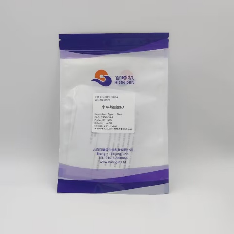 应用:小牛胸腺DNA(CT-DNA)是一种天然DNA,广泛用于研究调节DNA结构和功能的DNA结合抗癌剂和DNA结合剂。 小牛胸腺DNA也用于溶液中DNA行为的物理化学研究。