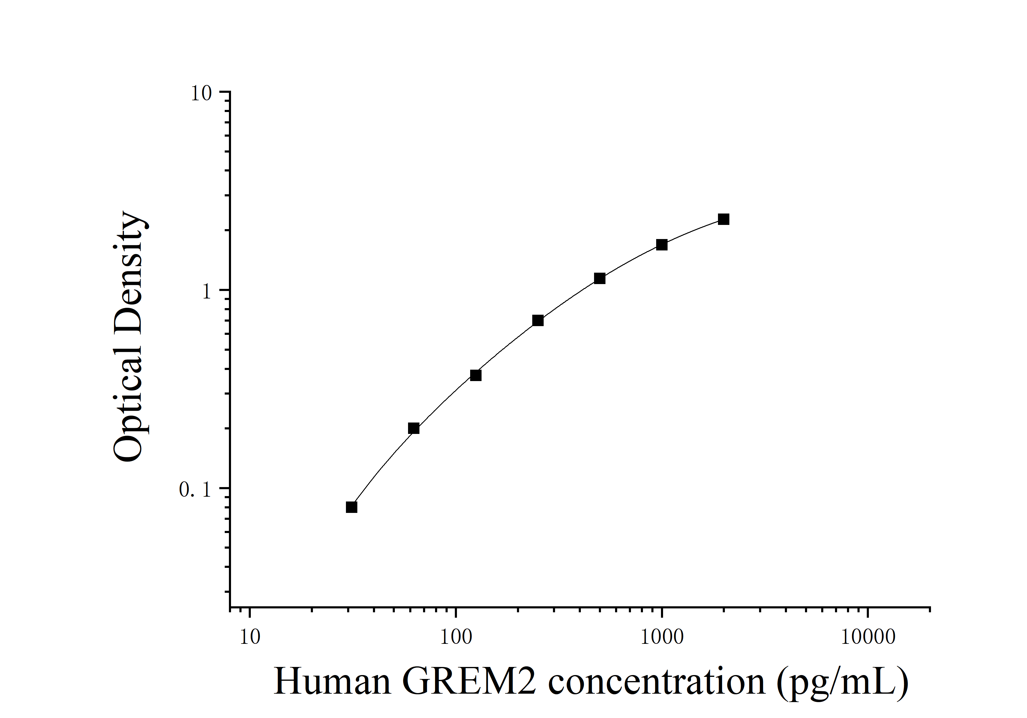 由于实验操作条件的不同( 如操作者、移液技术、洗板技术和稳定条件等),标准曲线的OD值会有所差异。以下数据和曲线仅供参考,实验者需根据自己的实验建立标准曲线。
