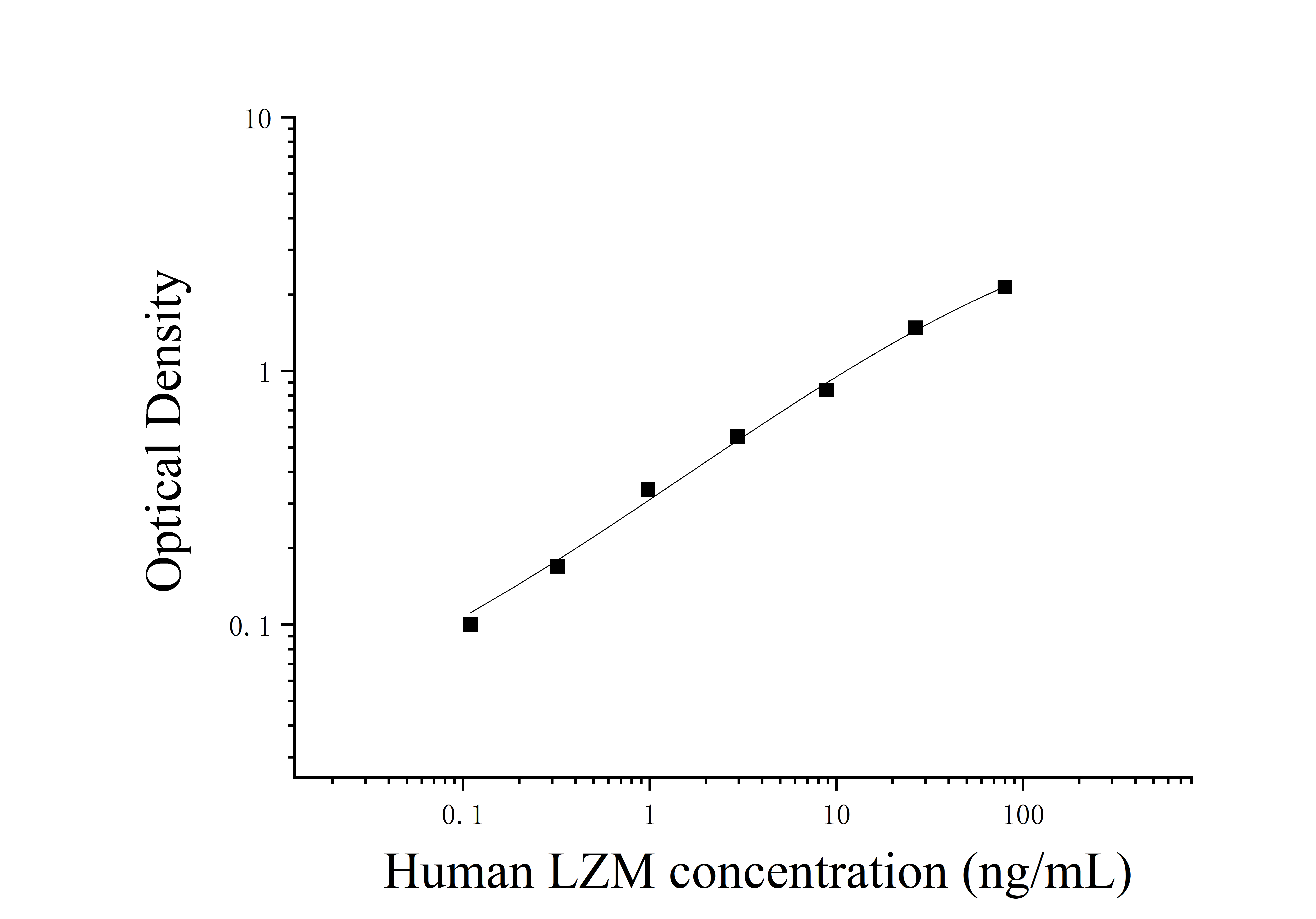 由于实验操作条件的不同( 如操作者、移液技术、洗板技术和稳定条件等),标准曲线的OD值会有所差异。以下数据和曲线仅供参考,实验者需根据自己的实验建立标准曲线。