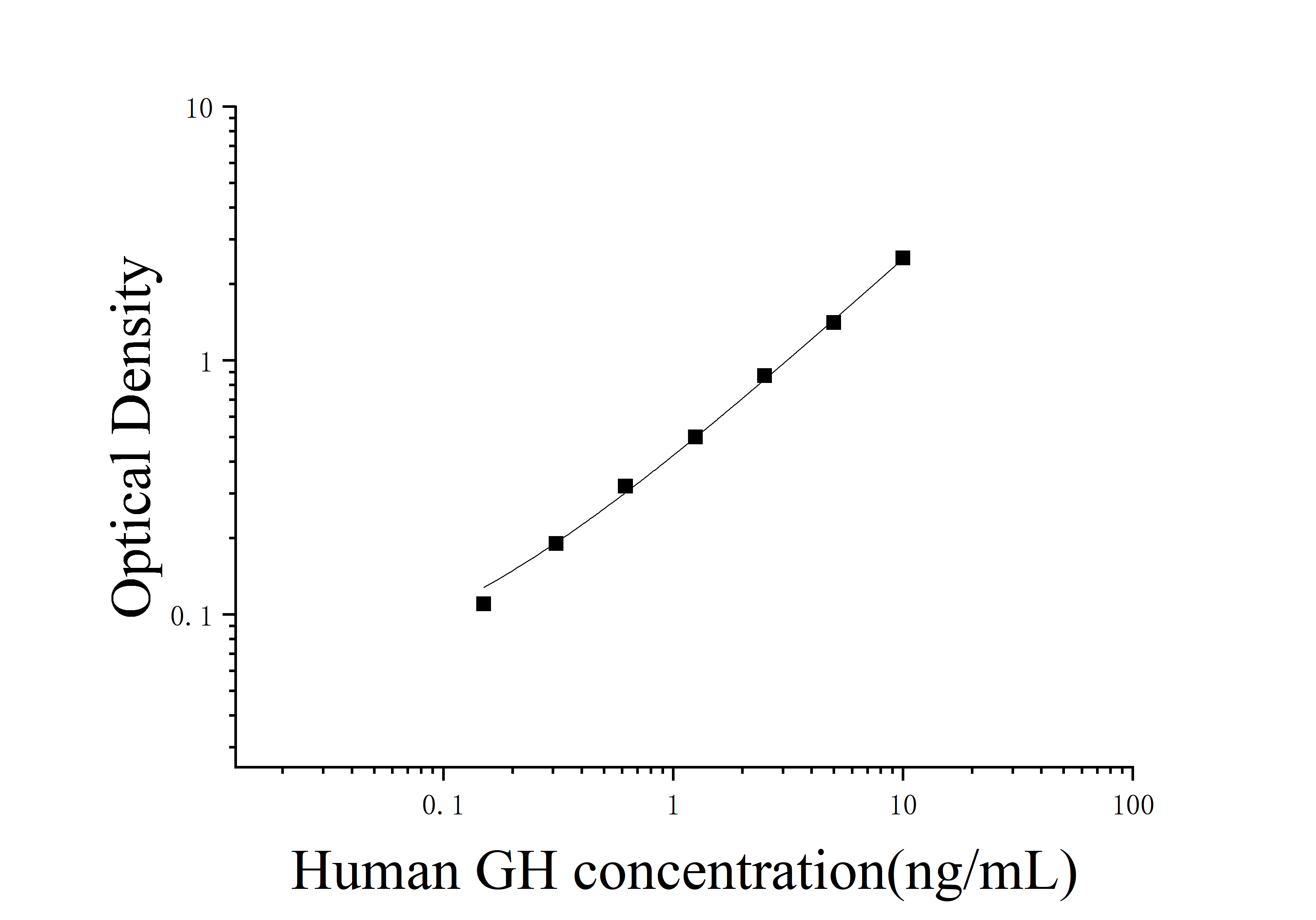 由于实验操作条件的不同( 如操作者、移液技术、洗板技术和稳定条件等),标准曲线的OD值会有所差异。以下数据和曲线仅供参考,实验者需根据自己的实验建立标准曲线。