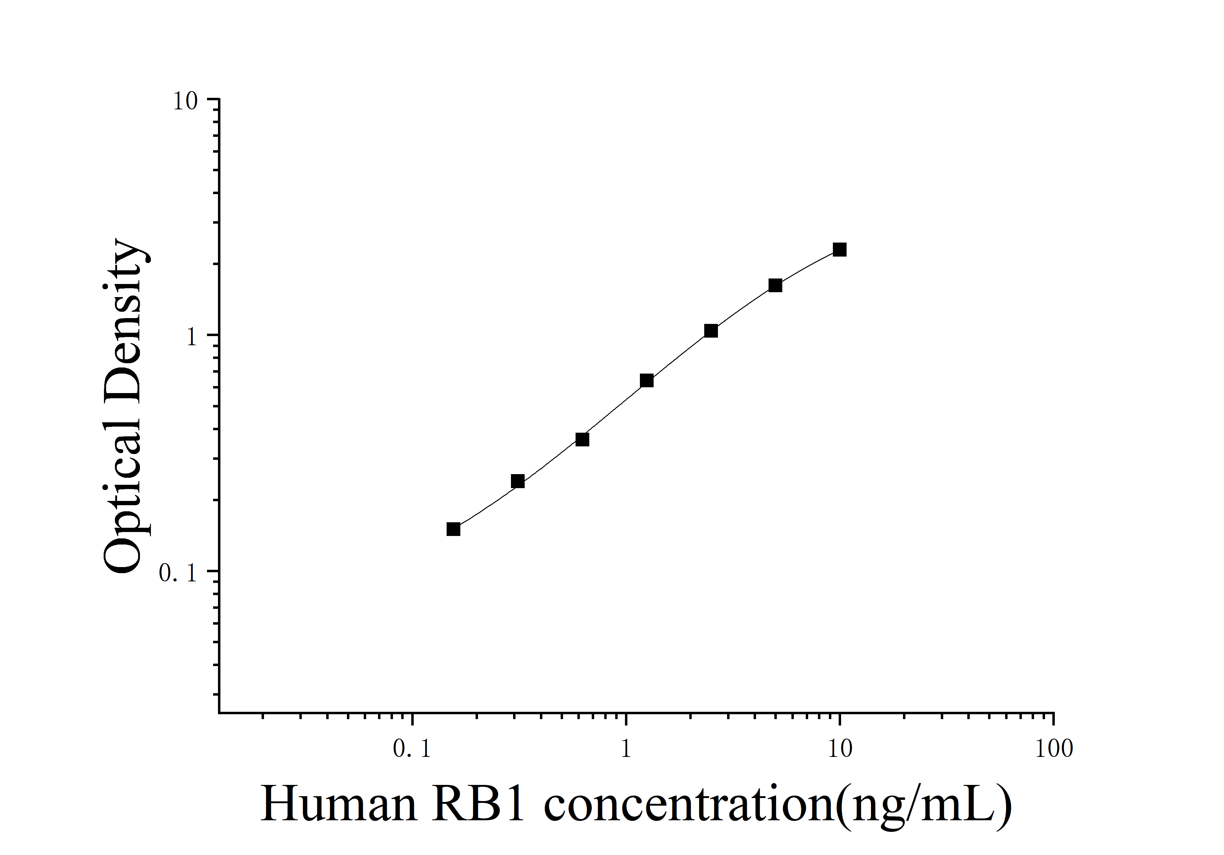 由于实验操作条件的不同( 如操作者、移液技术、洗板技术和稳定条件等),标准曲线的OD值会有所差异。以下数据和曲线仅供参考,实验者需根据自己的实验建立标准曲线。