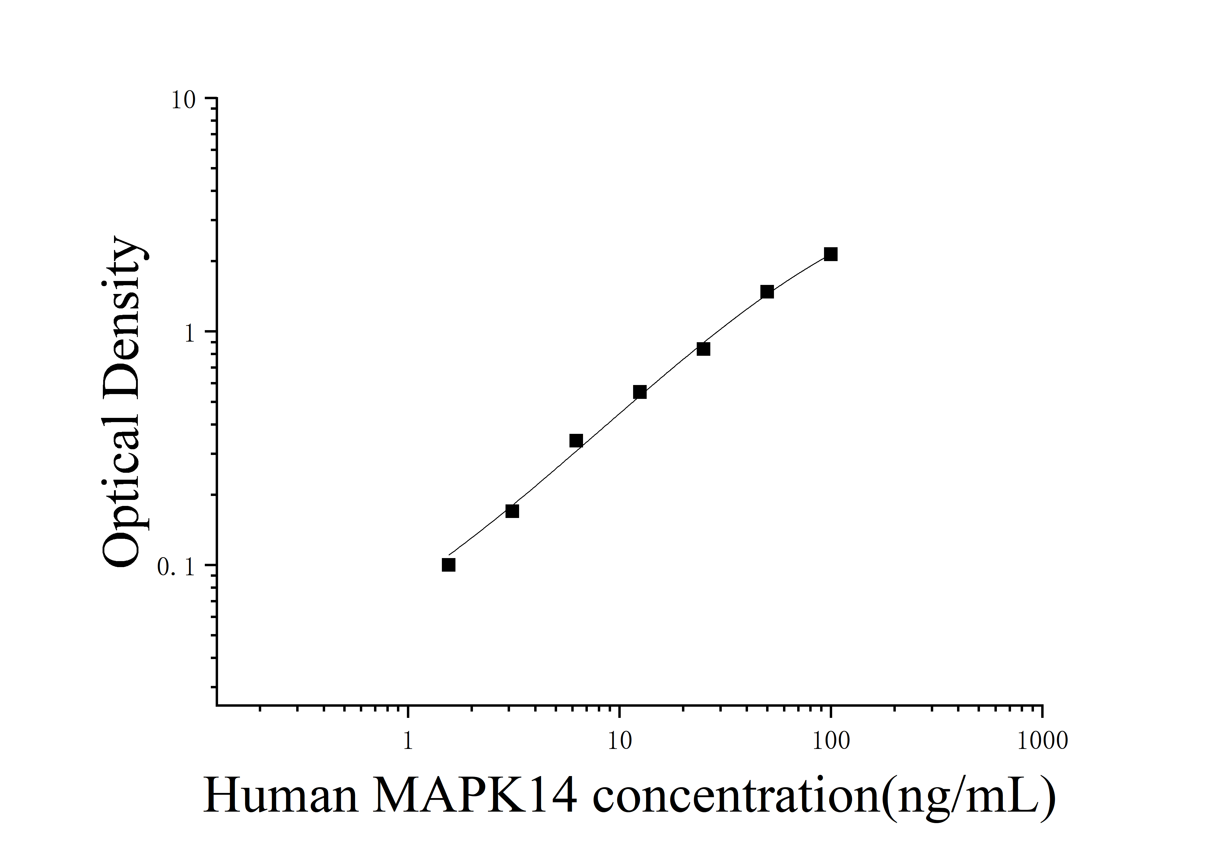 由于实验操作条件的不同( 如操作者、移液技术、洗板技术和稳定条件等),标准曲线的OD值会有所差异。以下数据和曲线仅供参考,实验者需根据自己的实验建立标准曲线。