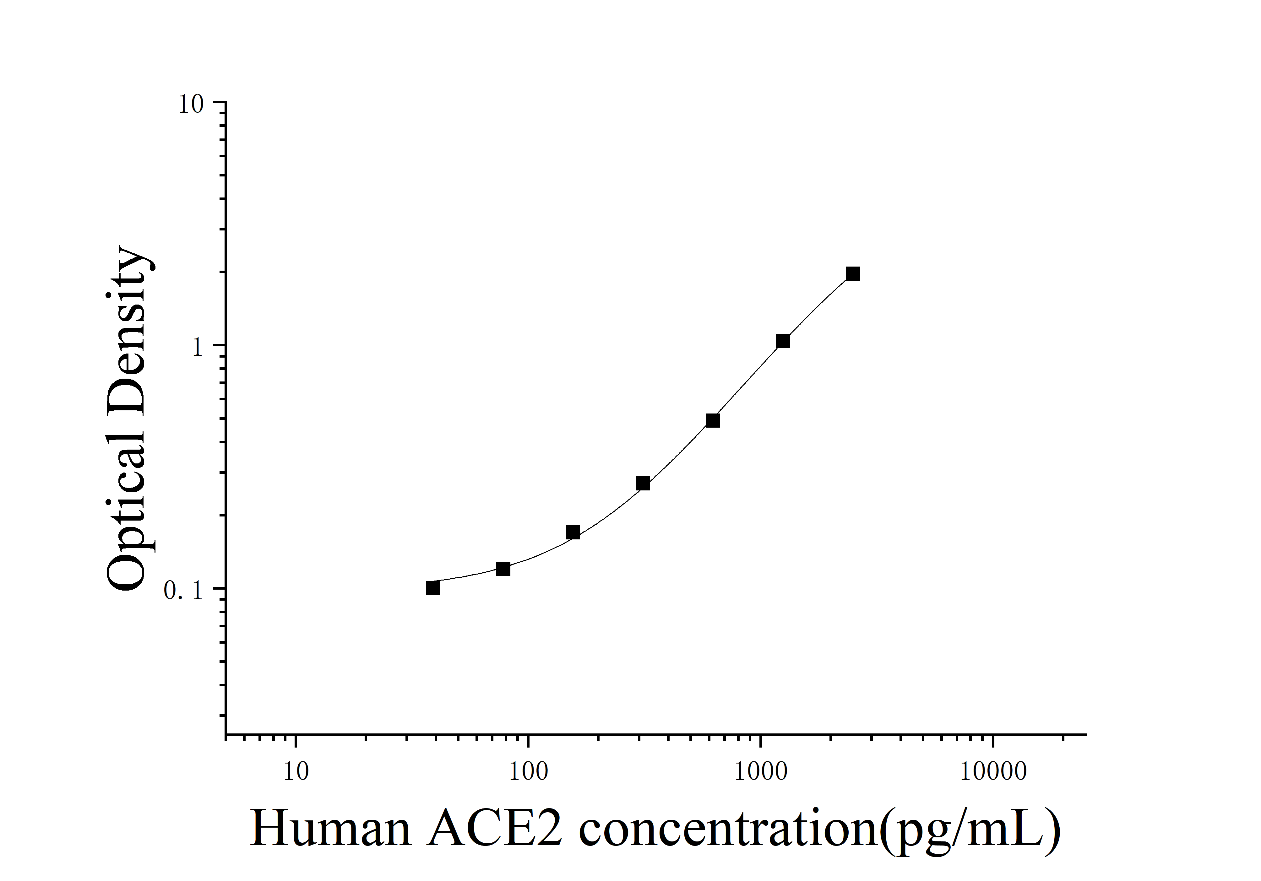 由于实验操作条件的不同( 如操作者、移液技术、洗板技术和稳定条件等),标准曲线的OD值会有所差异。以下数据和曲线仅供参考,实验者需根据自己的实验建立标准曲线。