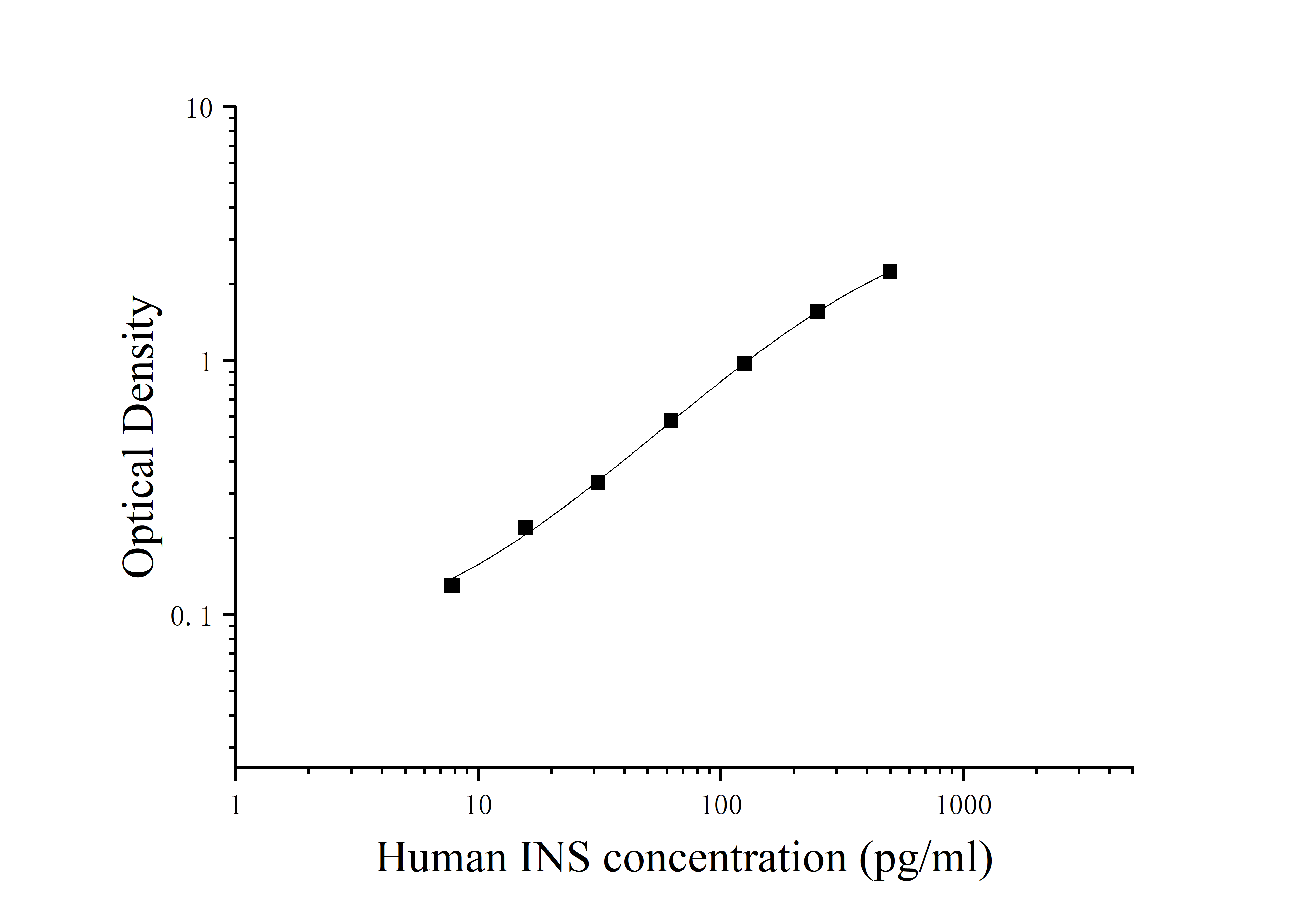 由于实验操作条件的不同( 如操作者、移液技术、洗板技术和稳定条件等),标准曲线的OD值会有所差异。以下数据和曲线仅供参考,实验者需根据自己的实验建立标准曲线。
