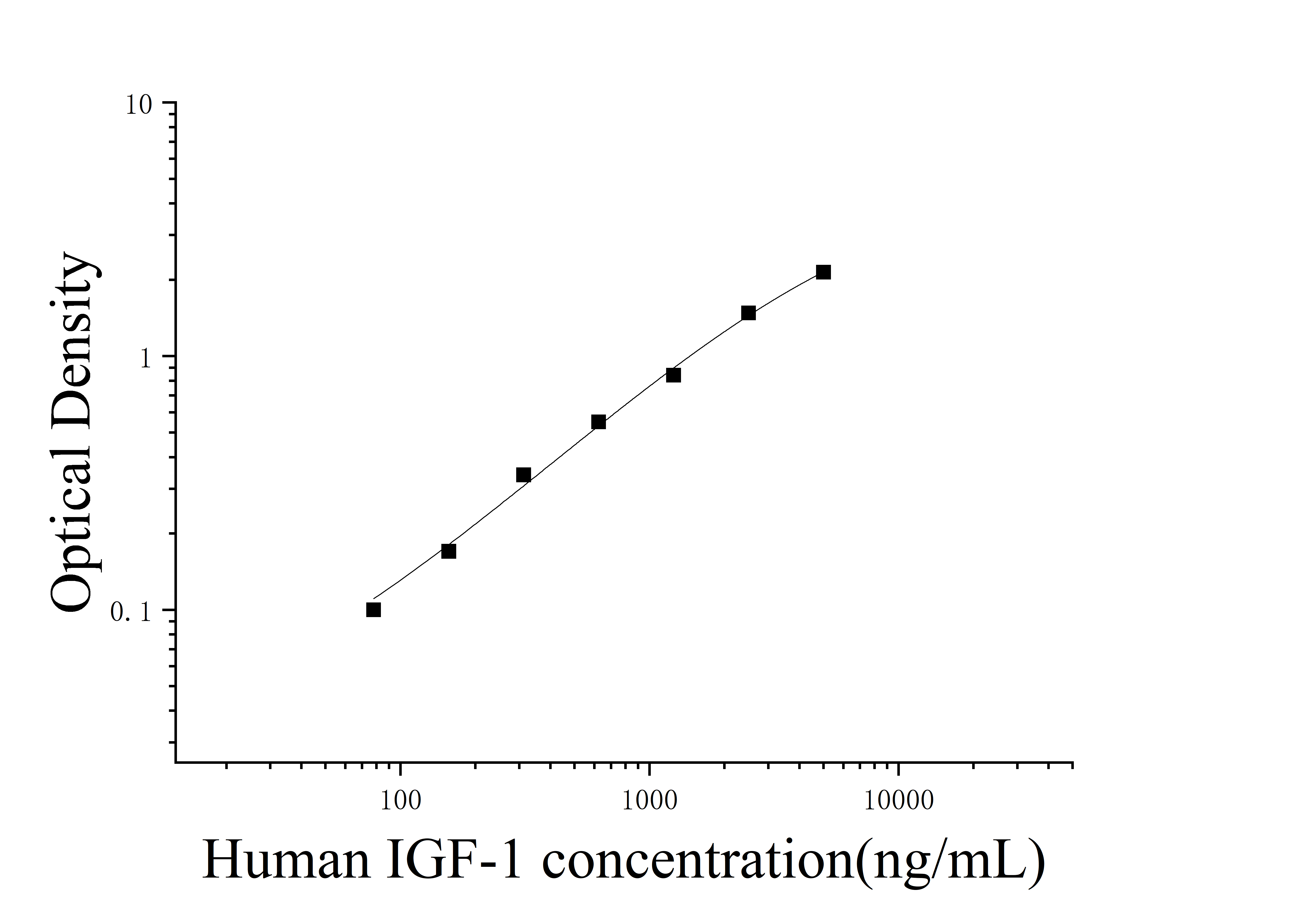 由于实验操作条件的不同( 如操作者、移液技术、洗板技术和稳定条件等),标准曲线的OD值会有所差异。以下数据和曲线仅供参考,实验者需根据自己的实验建立标准曲线。