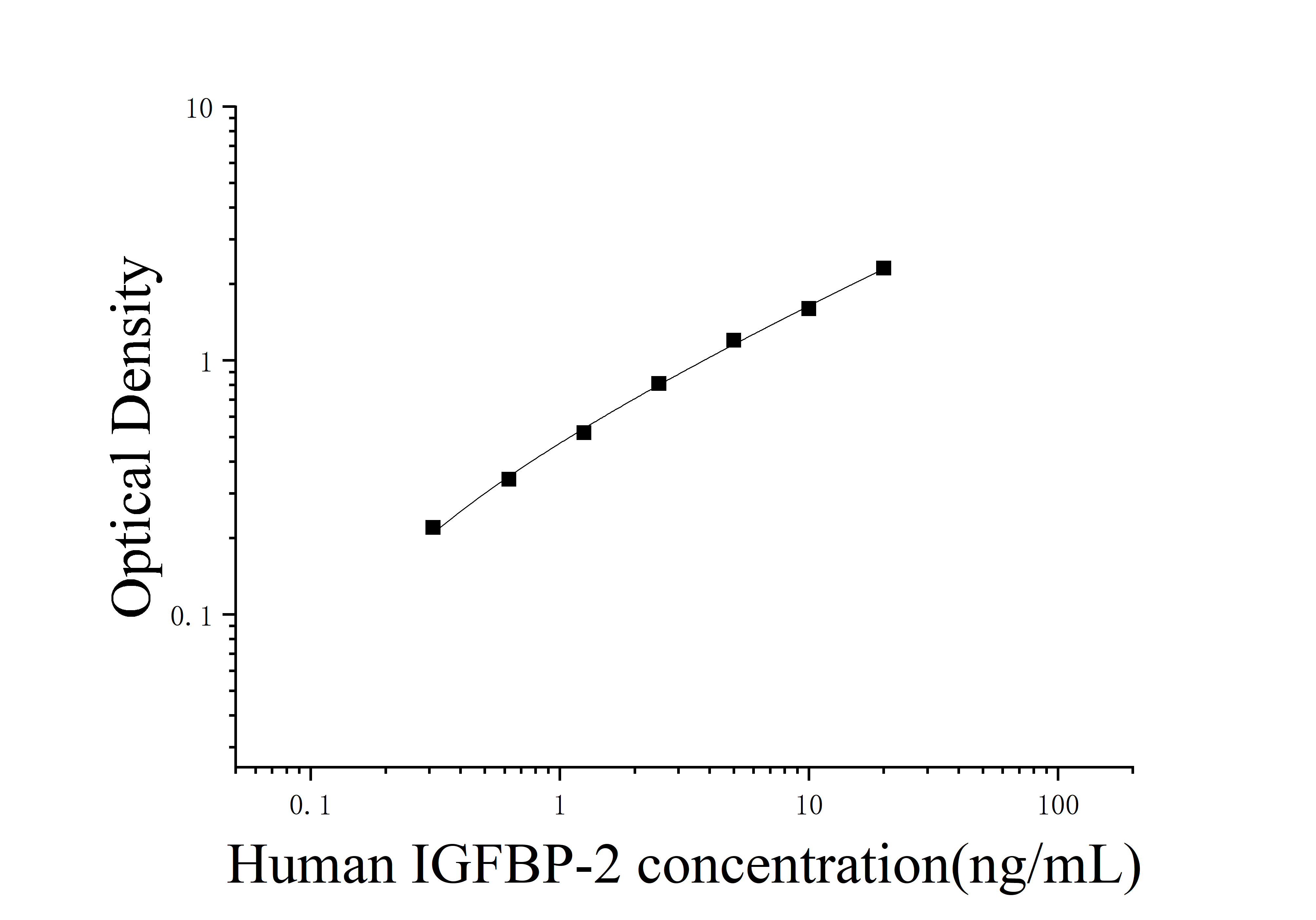 由于实验操作条件的不同( 如操作者、移液技术、洗板技术和稳定条件等),标准曲线的OD值会有所差异。以下数据和曲线仅供参考,实验者需根据自己的实验建立标准曲线。