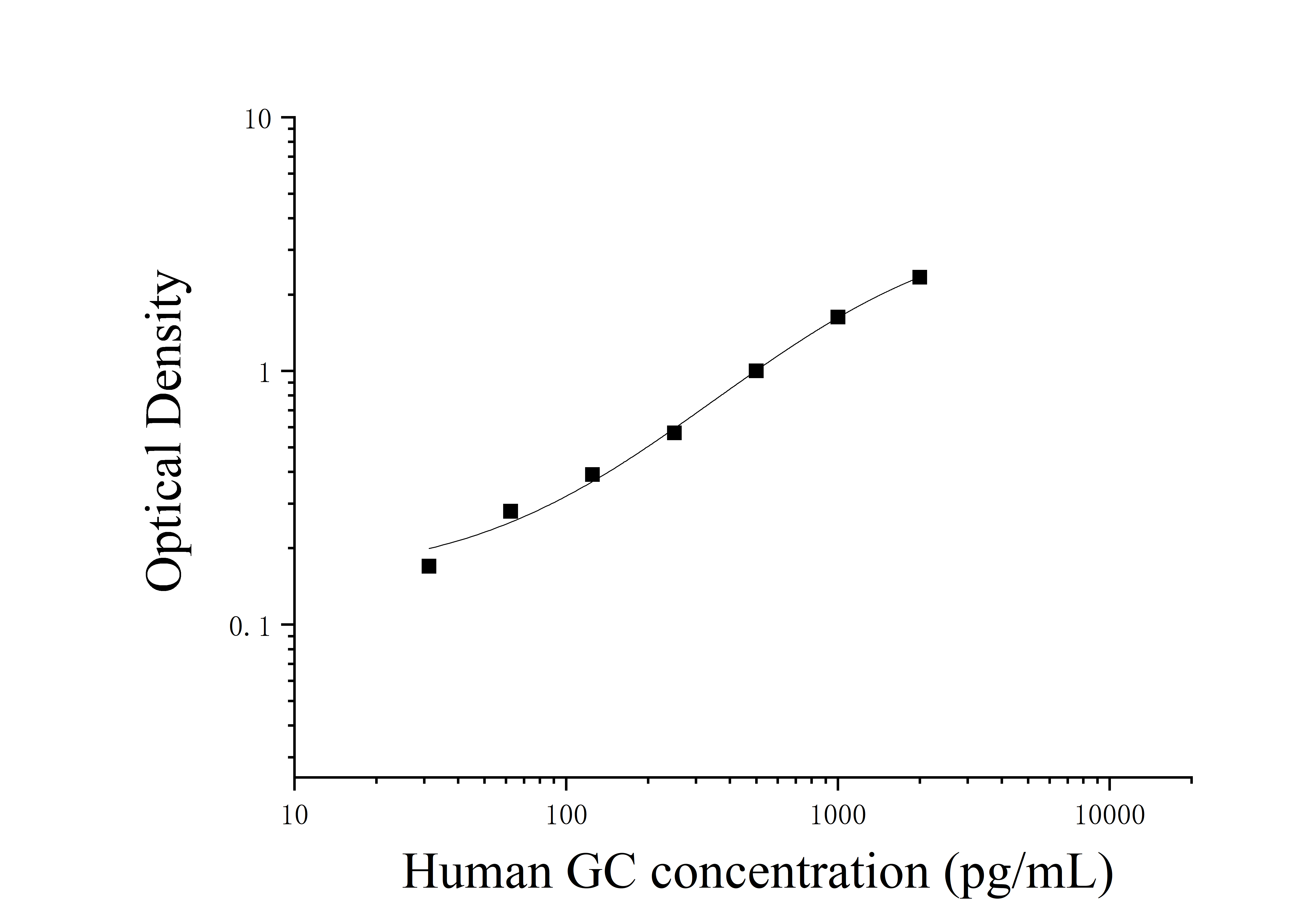 由于实验操作条件的不同( 如操作者、移液技术、洗板技术和稳定条件等),标准曲线的OD值会有所差异。以下数据和曲线仅供参考,实验者需根据自己的实验建立标准曲线。