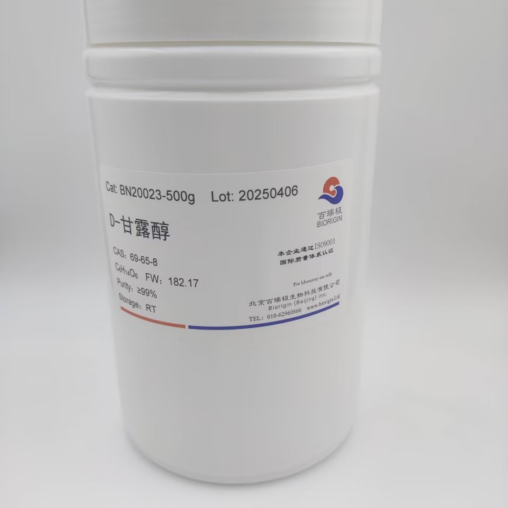 D-甘露醇是英文能简化而来的,是糖醇一类的物质,也可以叫做六醇 D-甘露密醇。产品的外观呈现的是白色结晶粉末,容易溶于水。产品的化学元素和山梨糖醇其实是一样的,不过两者在化学分子的构造上不一样,具有类似蔗糖的甜味。